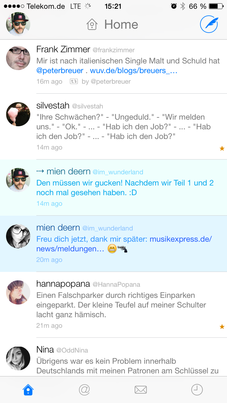 Mittlerweile hinken die Twitter-Apps von Drittanbietern der offiziellen Twitter-App in einigen Punkten etwas hinterher, da neue Funktionen in der Regel erst in der offiziellen Twitter-App angeboten werden, bevor sie den Weg – wenn überhaupt – auch in andere Twitter-Clients finden.